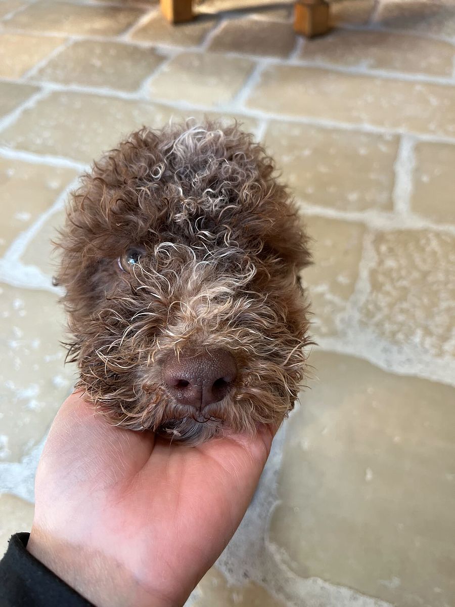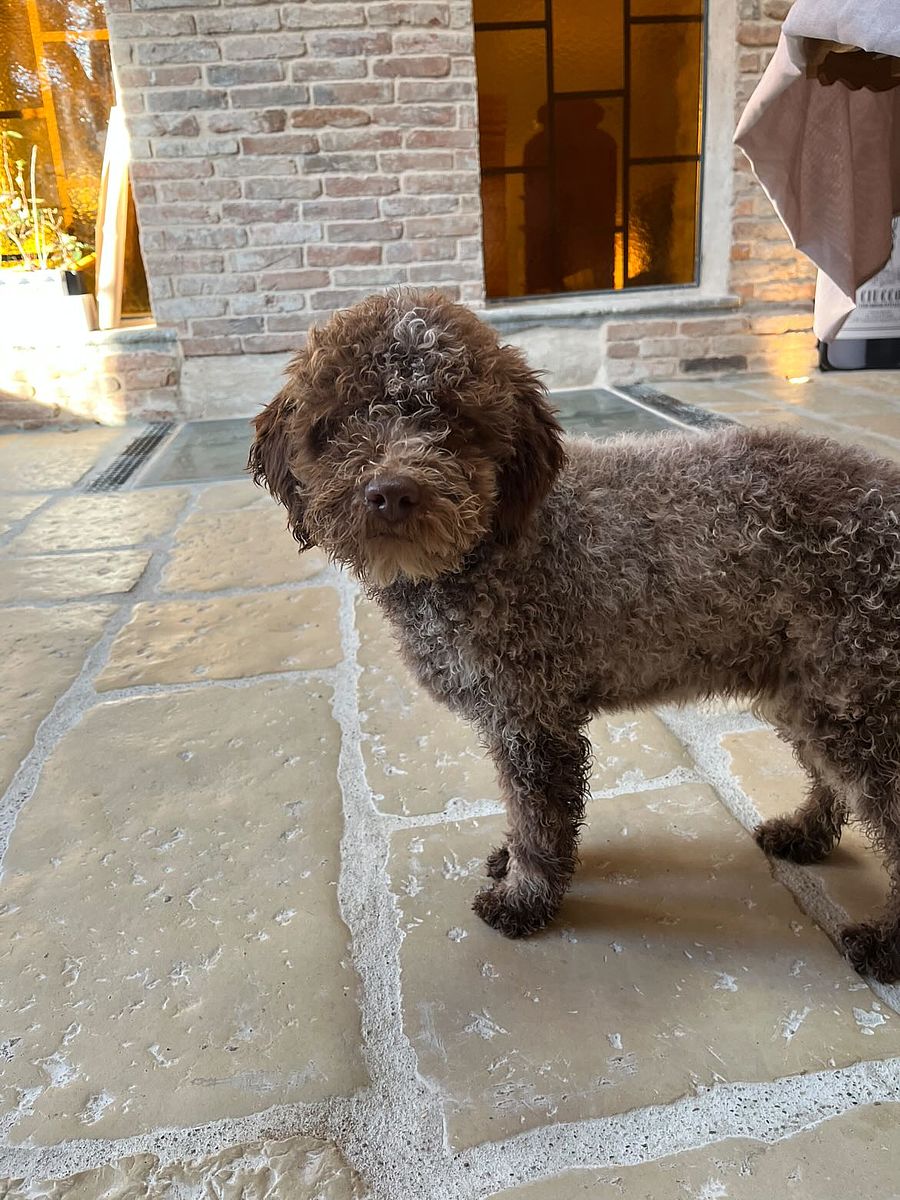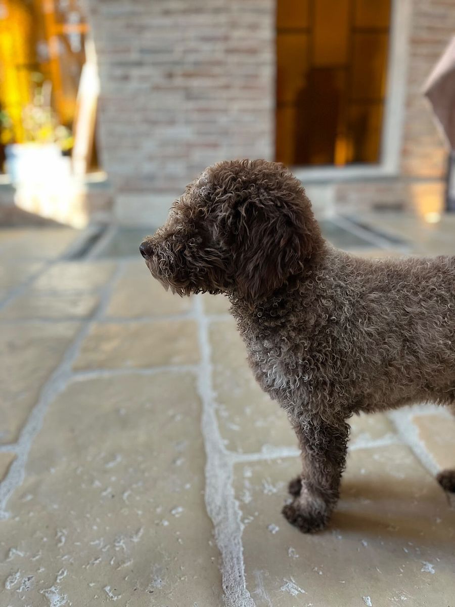 Violante è una giovane Lagotta Romagnola di circa 6 mesi che incarna con naturalezza le qualità più apprezzate della razza. È una cucciolona estremamente docile, dal temperamento dolce ed equilibrato, poco incline all’abbaio e capace di adattarsi con grande serenità alla vita quotidiana.