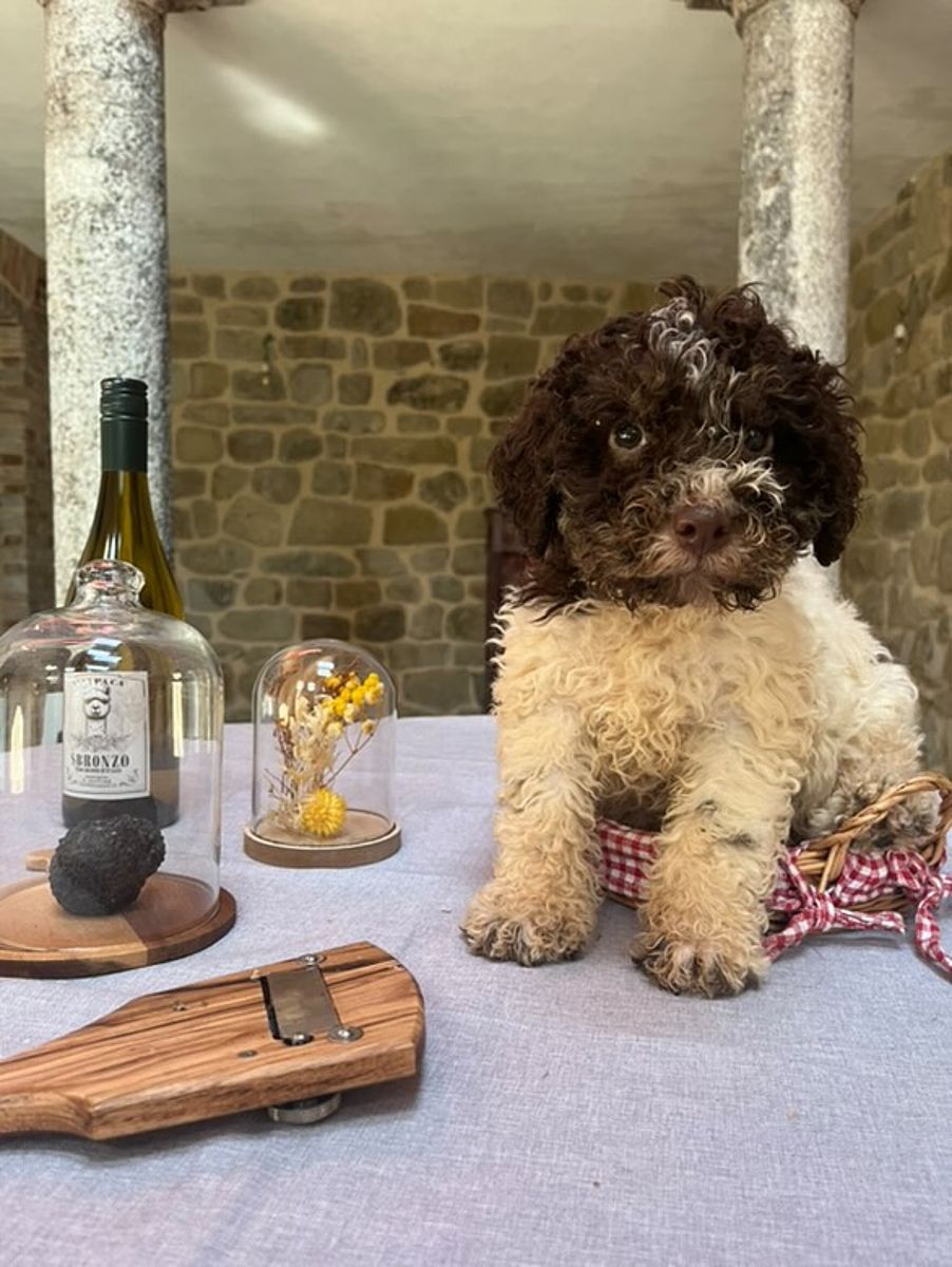Grazie alla sua natura tranquilla e sensibile, questo Lagotto saprà diventare un membro prezioso della famiglia, sempre pronto a condividere momenti di gioco, affetto e serenità quotidiana.