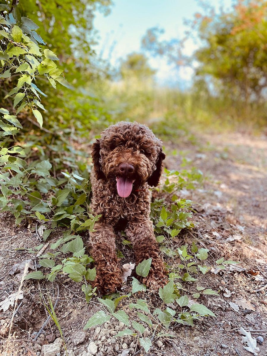 Astro ist ein 3 Jahre alter Lagotto Romagnolo ohne Stammbaum, aber mit einem süßen und sanftmütigen Charakter. Er hat eine Basisausbildung für die Trüffelsuche erhalten und zeigt bereits gute Fähigkeiten und große Aufmerksamkeit bei der Arbeit. Er ist ein liebevoller, geselliger Hund und auch perfekt für Familien, freundlich zu Erwachsenen und Kindern.