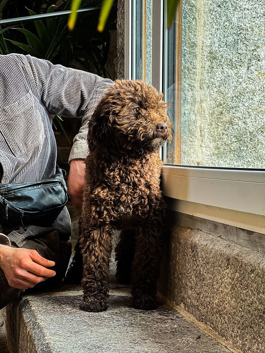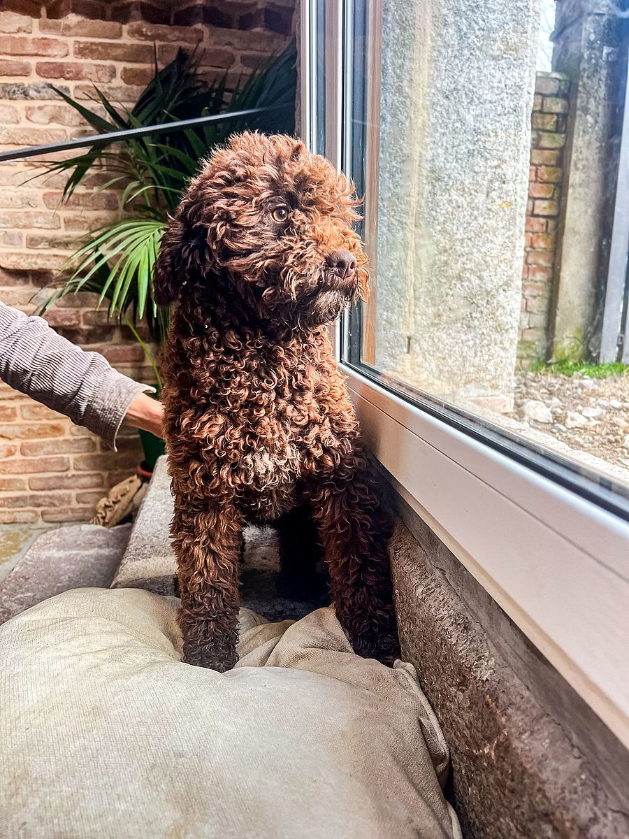 Lucifero ist ein etwa einjähriger Lagotto Romagnolo, der sich mitten in seiner körperlichen und charakterlichen Entwicklung befindet. Sein Name ist kraftvoll und klangvoll und weckt Assoziationen mit einer starken Persönlichkeit. Doch hinter diesem ausdrucksstarken Namen verbirgt sich ein Hund mit einem überraschend ausgeglichenen, offenen und sehr geselligen Wesen.