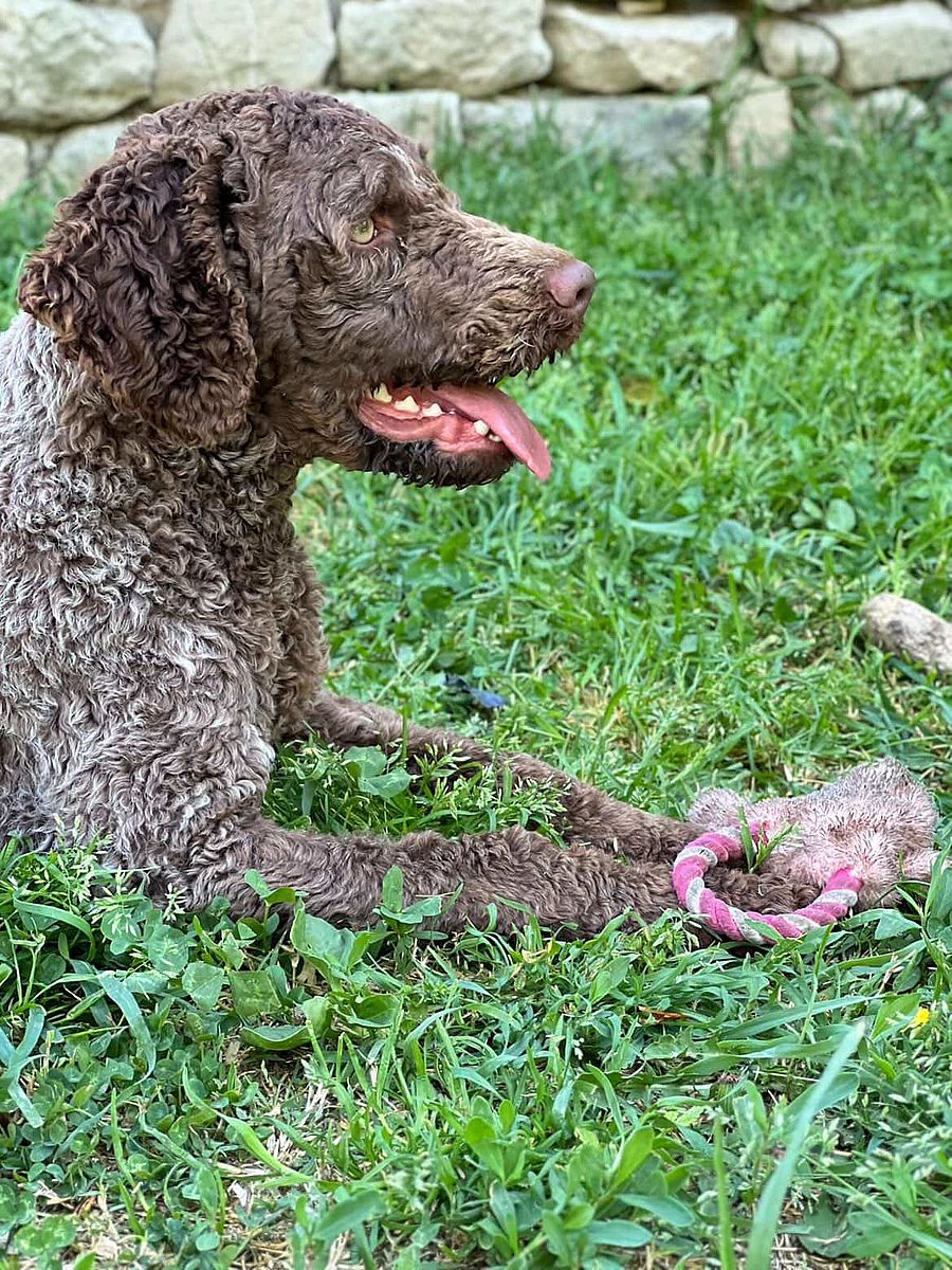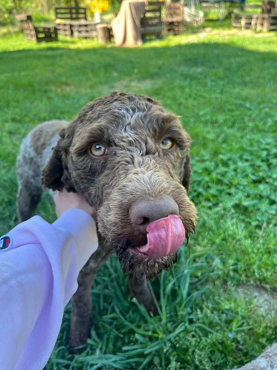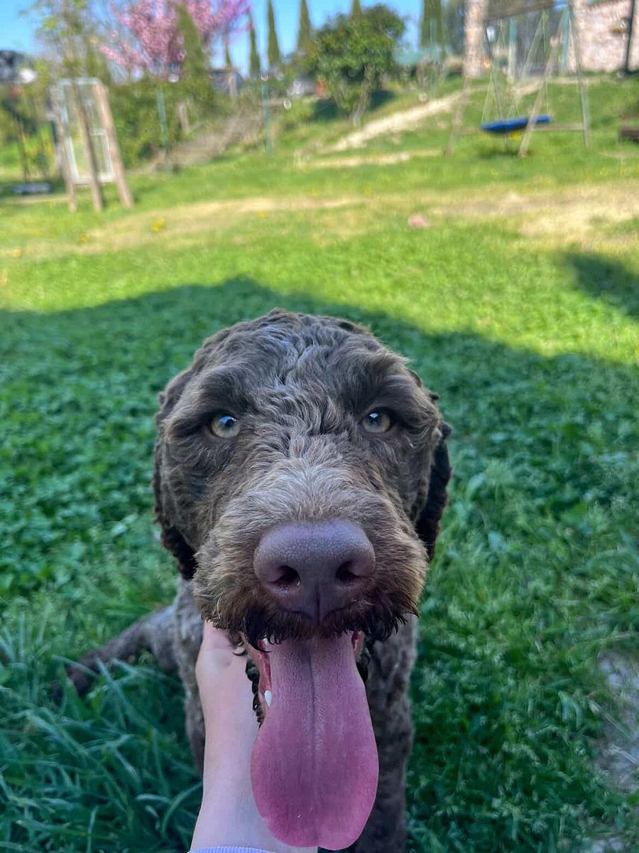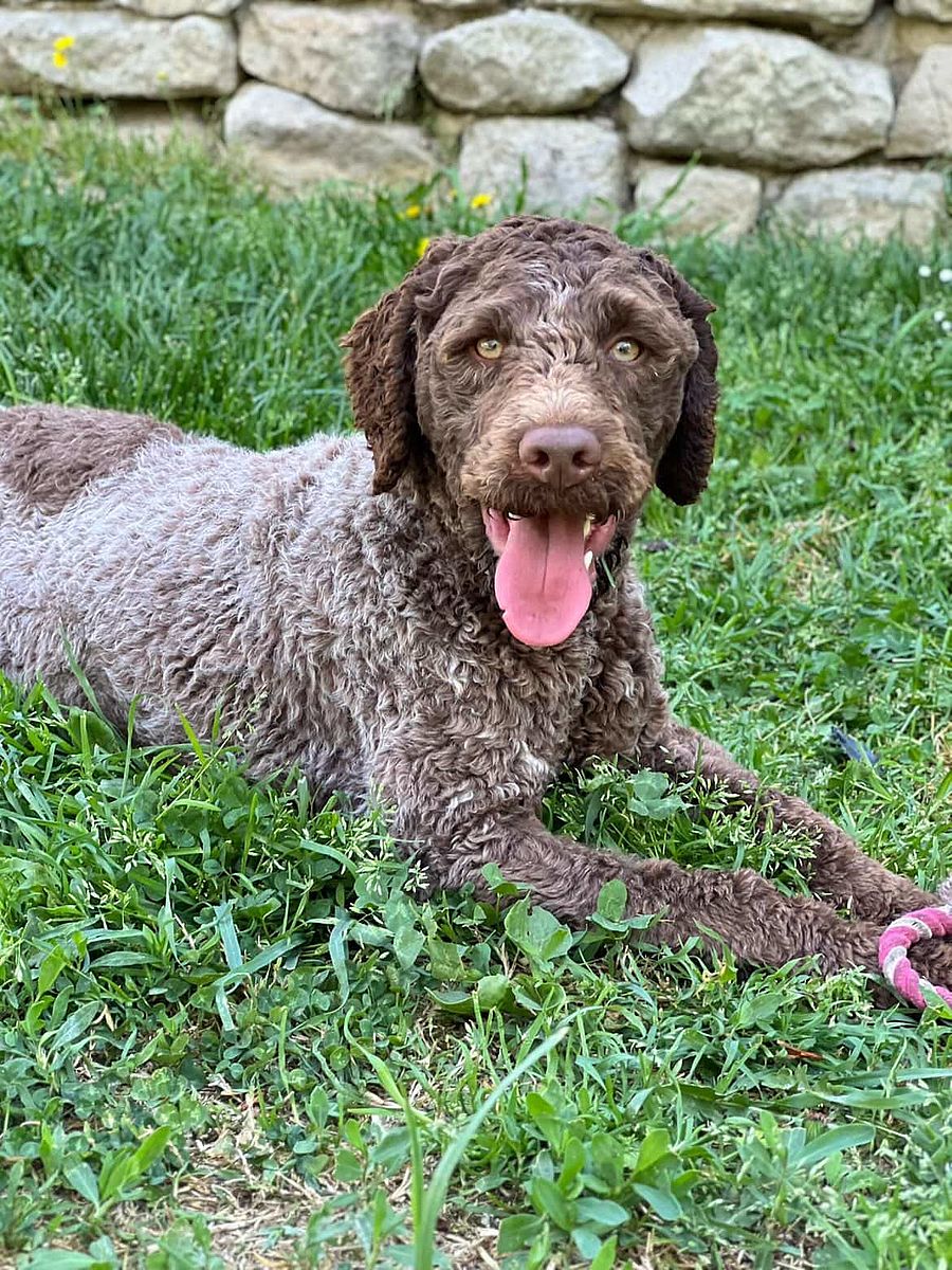 Nerello is a young male Lagotto Romagnolo of about one year, son of Zoe and CHURCHILL, embodying morphological harmony, coat quality, and an exceptionally balanced temperament.